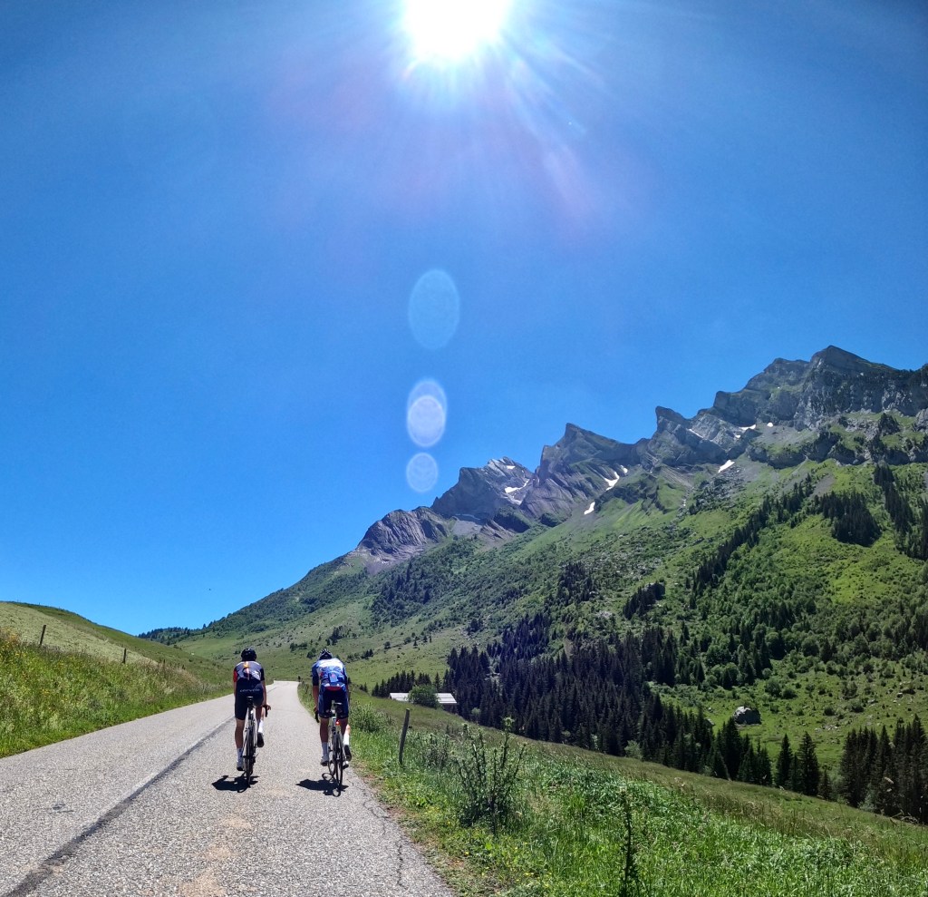 We had a fairly big day planned. After driving down to where we were setting off from, it was due to be slightly over four hours and with 2700m of climbing. The three main climbs on the agenda were the Col de la Colombiere, the Col du Croix Fry, and the Col des Aravis.