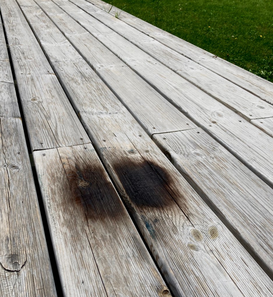 Unfortunately, his claims that ‘it would be fine’ proved false. The mat melted, and the metal box left a rather noticeable burn in the wood. Good job, Geoff!