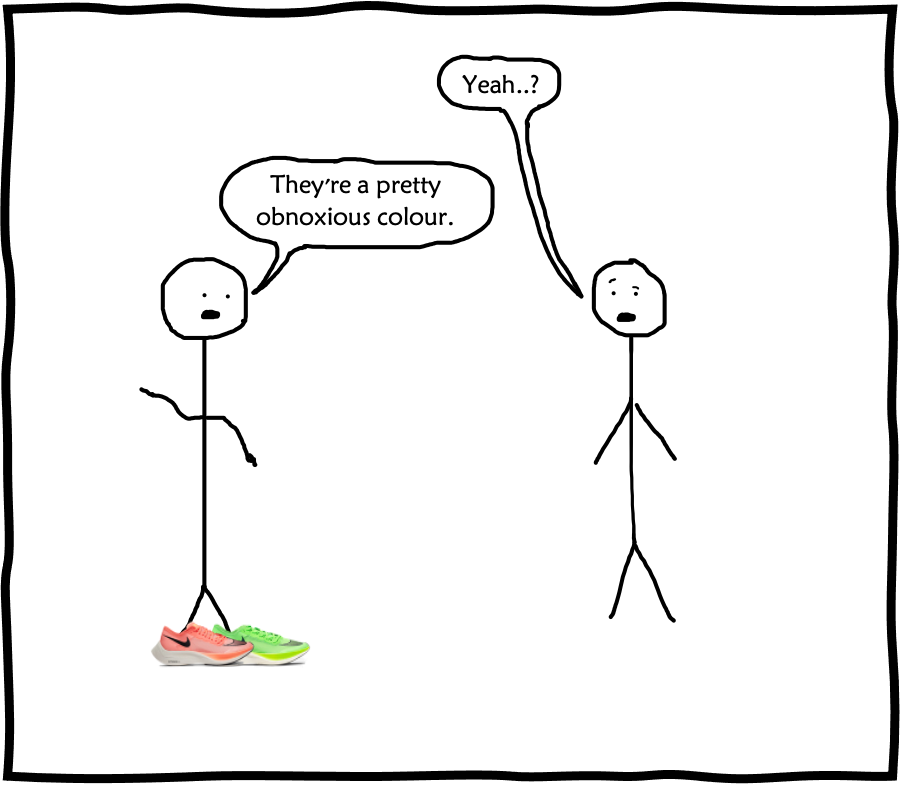 • I have not actually worn the shoes yet. This is not going to be a review. There are plenty of those already on the internet in various forms. The shoes have been proven to be faster in a number of independent studies so my opinion would be fairly inconsequential. Instead, my aim is to dispel some misconceptions surrounding them, and respond to some of the critics.